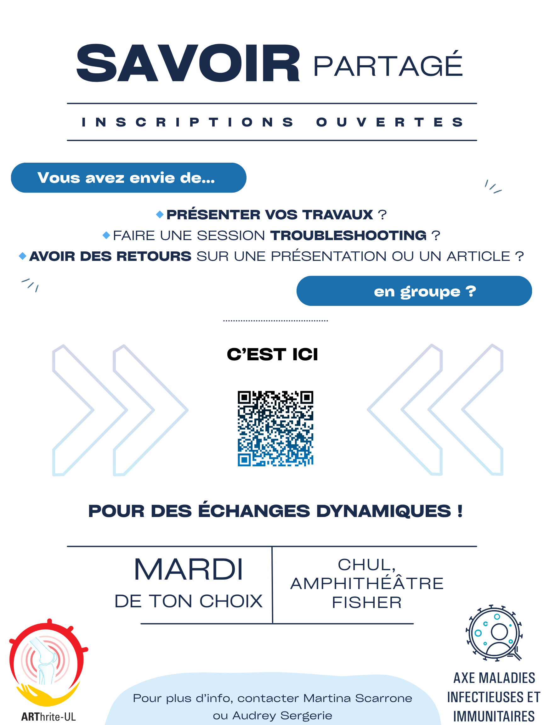 Pour présenter vos travaux: Écrivez à centrearthrite@crchudequebec.ulaval.ca